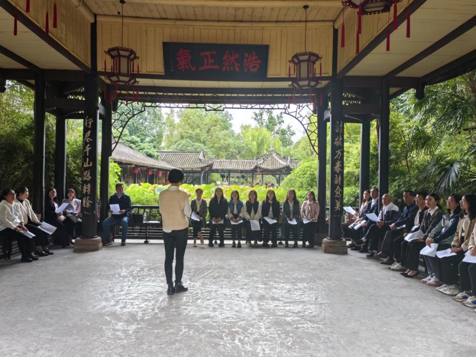 为深入学习贯彻习近平文化思想,全面深刻领会“两个结合”,传承中华优秀传统文化。10月12日,学院机关党总支第六、七、八党支部一行赴眉山三苏祠博物馆开展“牢记嘱托 感恩奋进 廉洁守心 清风伴行”主题党日活动。