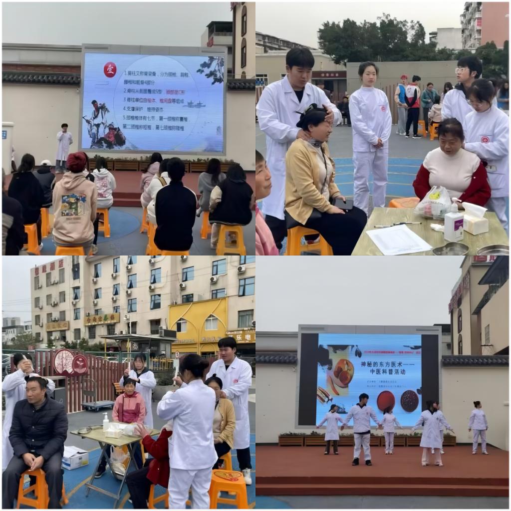 志愿者以“颈椎病中医养生保健”为题,从颈椎病的定义、产生原因及日常生活中如何有效防治等方面向社区居民科普颈椎病防治知识,并提醒大家如果出现颈椎问题要及时就医,早发现、早诊断、早治疗。活动期间,志愿者带领现场居民练习健身气功八段锦、太极拳,开展艾灸、拔罐、针刺等中医适宜技术。