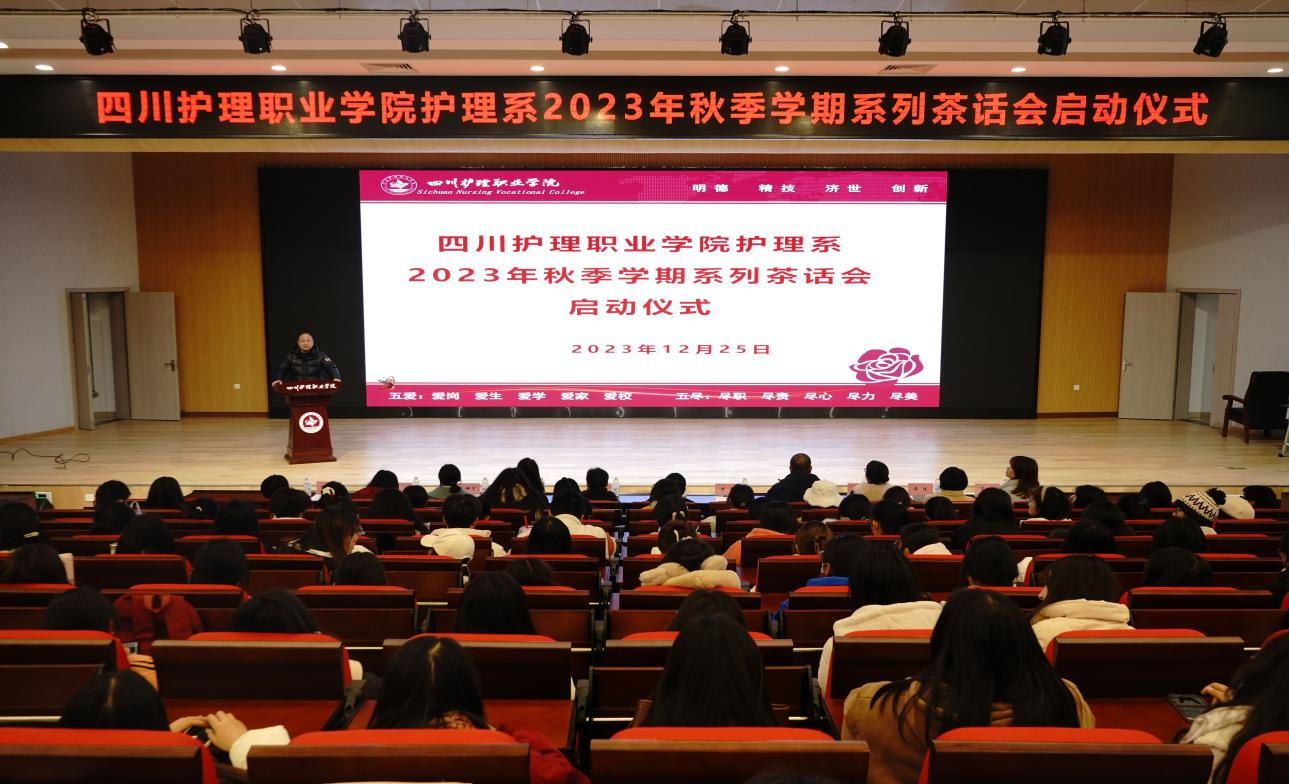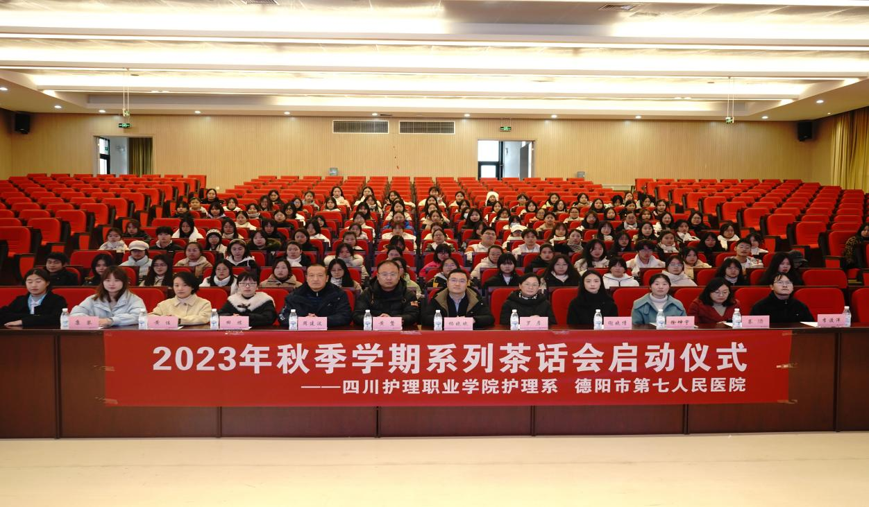 12月25日,护理系联合德阳市第七人民医院在德阳校区开展2023年秋季学期系列茶话会活动。系党总支书记黄鸷、学院党政办副主任周建波、系党总支副书记田炼、德阳市第七人民医院院长杨晓斌、副院长罗彦出席活动,120名学生参加。