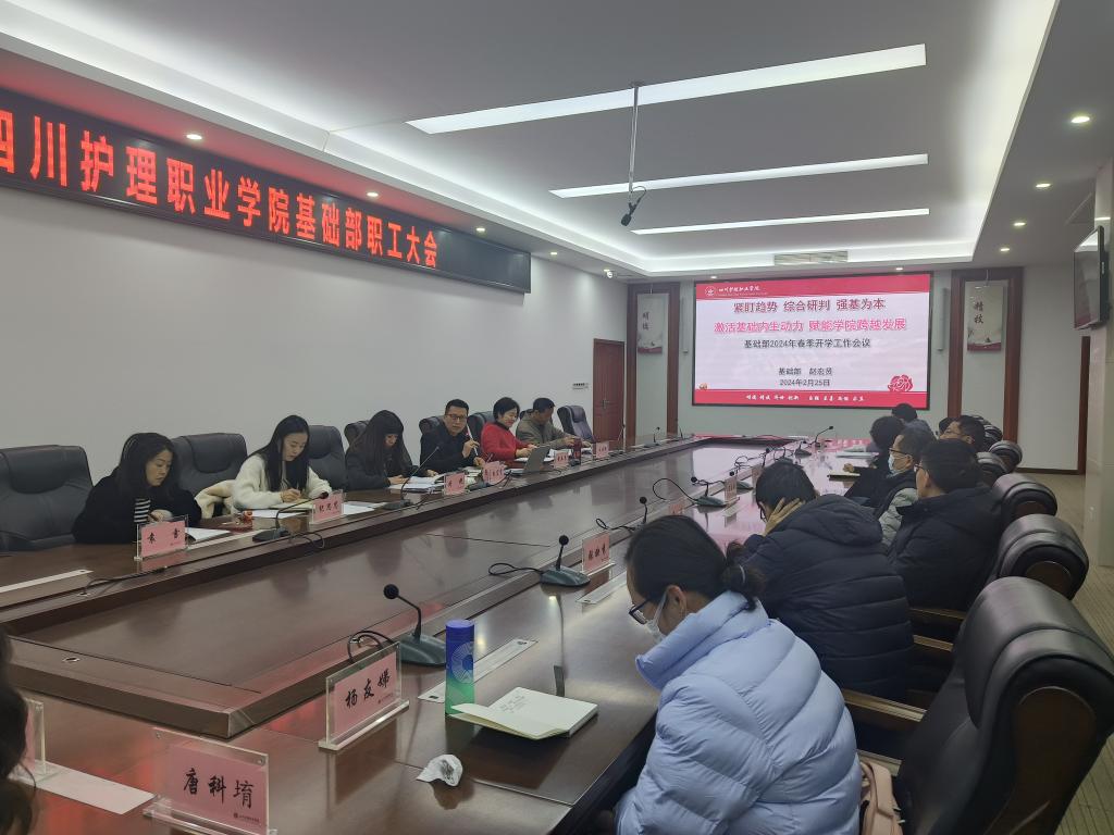 2月25日,基础部在成都校区召开2024年春季开学工作会议。部门全体教职员工、院级督导专家代表、兼职教师代表参加会议,会议由基础部副主任黄亚琴主持。