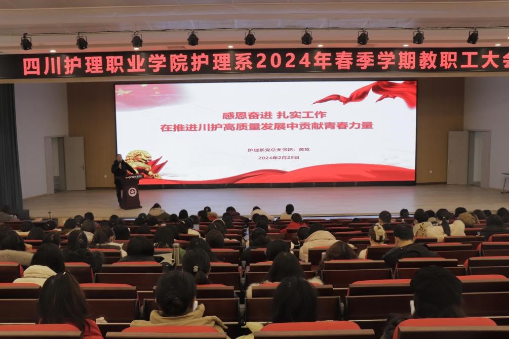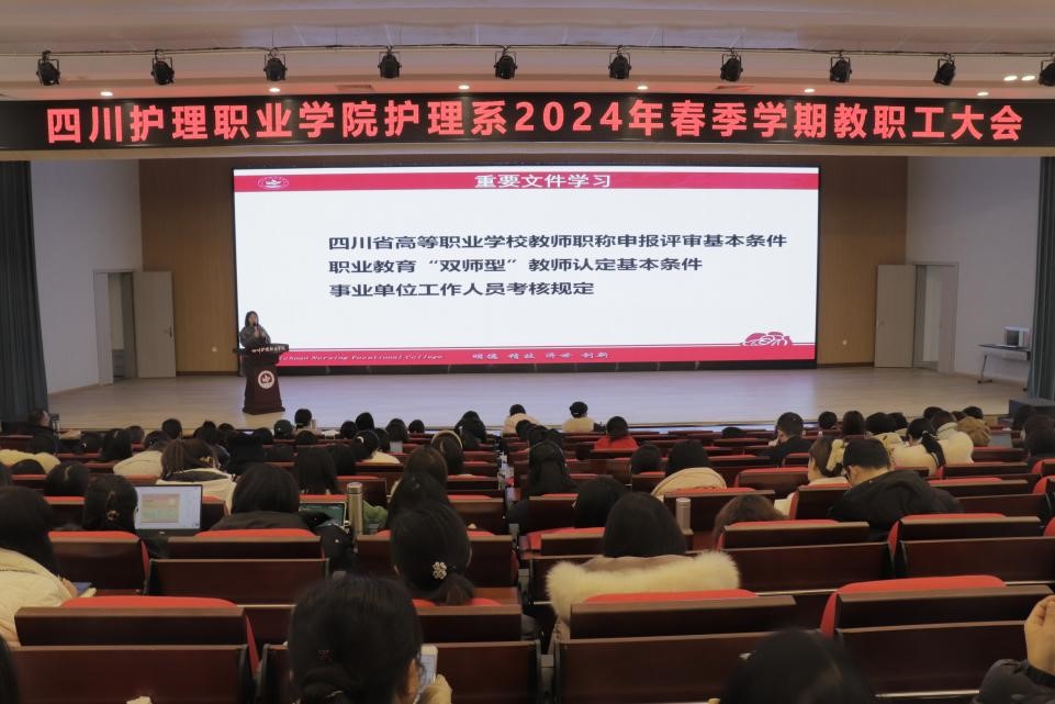2月25日,护理系2024年春季学期教职工大会在德阳校区举行。系主任邓小利,系党总支书记黄鸷,副主任苗泓丽、淳玲,党总支副书记田炼出席会议。系部全体教职工参加会议。会议由邓小利主持。