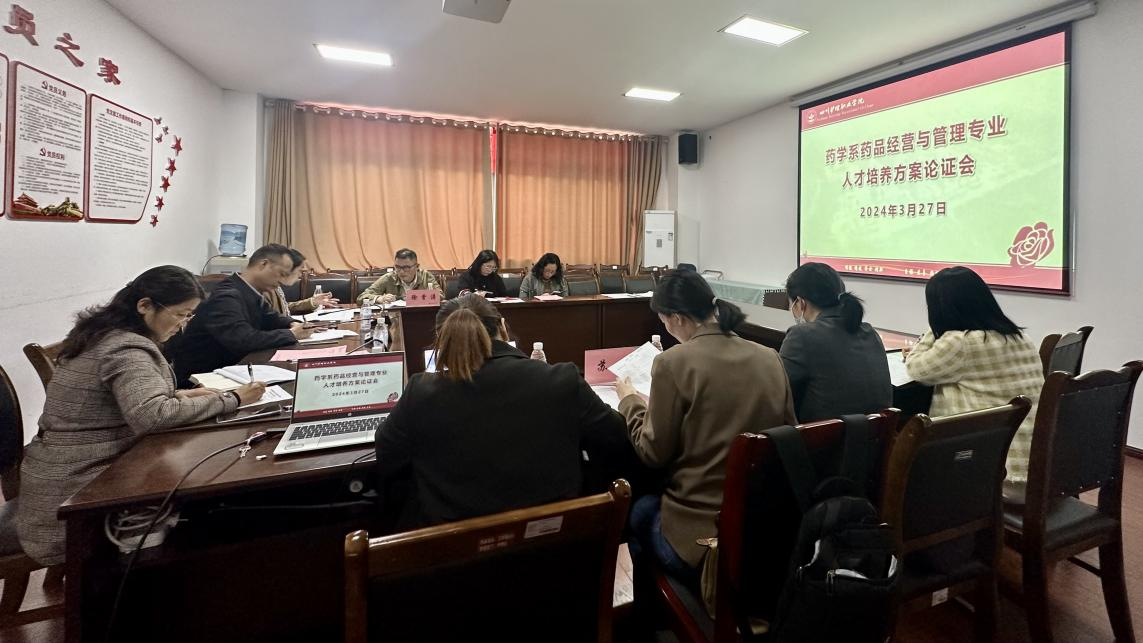 向俊蓓就药品经营与管理专业申报和开设情况作了简要介绍,专业负责人就人才培养方案的设计、面临的问题和困难进行汇报。与会人员从国家要求、专业标准、必修选修课程比、理实课时比、办学模式和实际岗位需求等方面进行讨论,并对人才培养方案提出意见和建议。