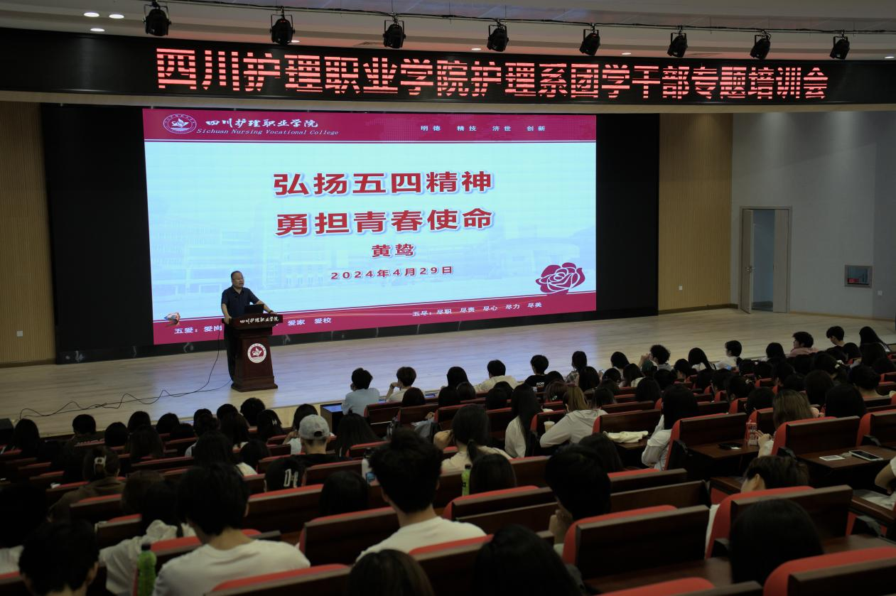 为进一步推动团组织的建设,4月29日,护理系在德阳校区开展团学干部专题培训会,会议由护理系党总支书记黄鸷、副书记田炼主讲,系团总支学生会全体成员、系在校班级班长与团支书400余人参加。
