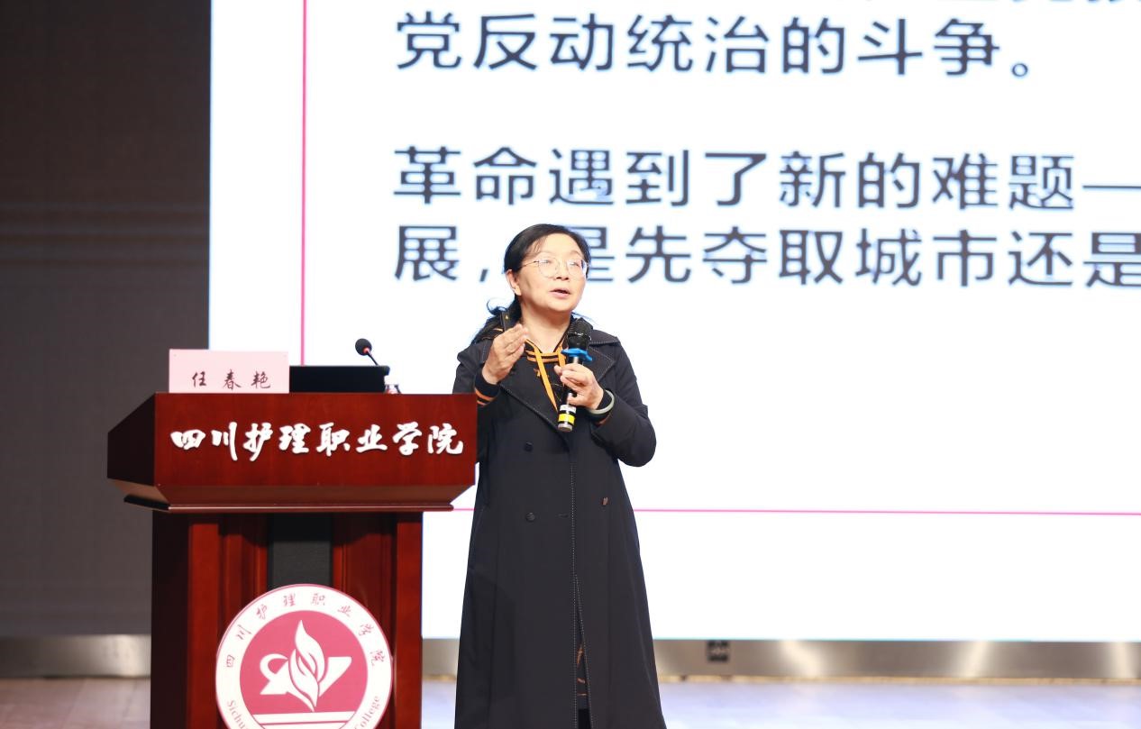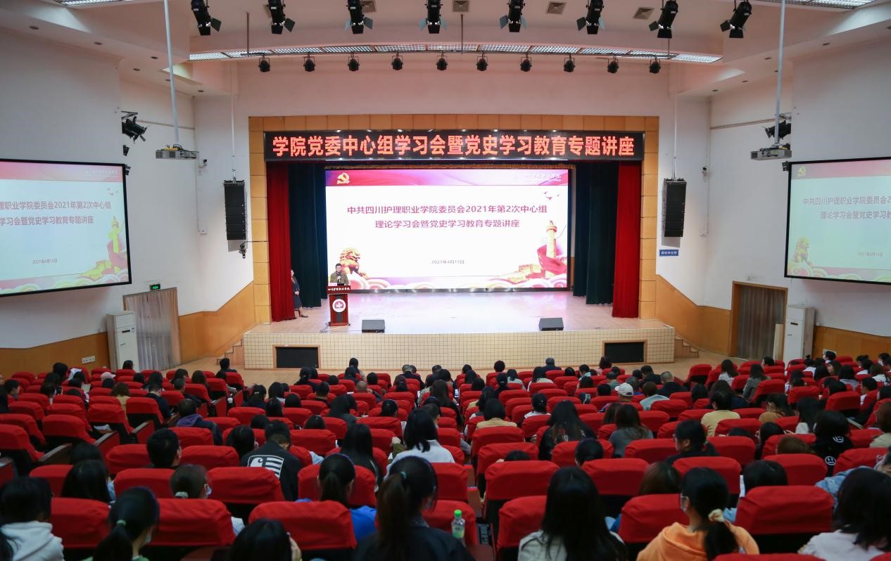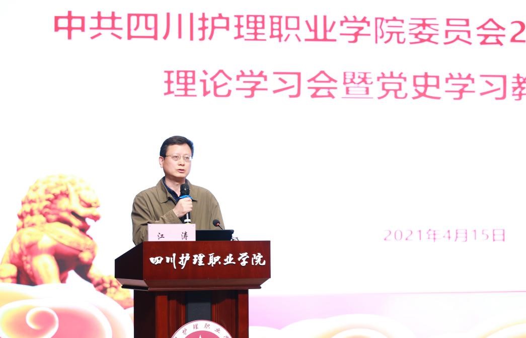 为扎实推进党史学习教育,2021年4月15日,学院举办2021年第2次党委中心组理论学习会暨党史学习教育专题讲座,邀请四川省委党校任春艳教授到成都校区现场授课。省卫生健康委机关党委书记、党组成员张涛莅临指导。讲座由学院党委书记江涛主持。