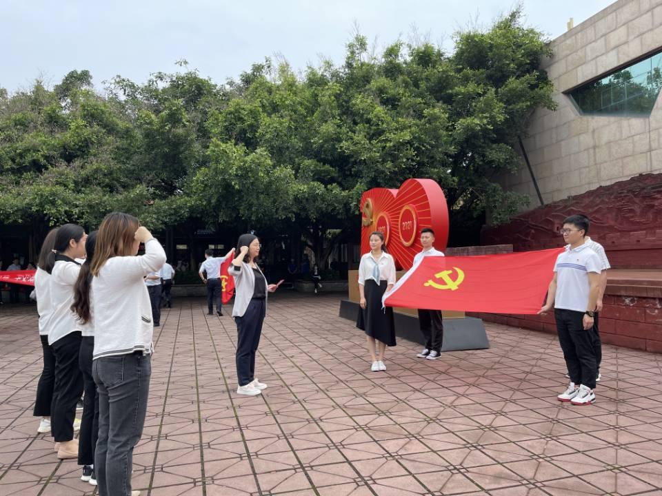 “我志愿加入中国共产党,拥护党的纲领,遵守党的章程,履行党员义务……”在支部书记梁小利的带领下,全体党员同志在建川博物馆的“中流砥柱”馆外“我与祖国共奋进”浮雕墙前重温入党誓词。