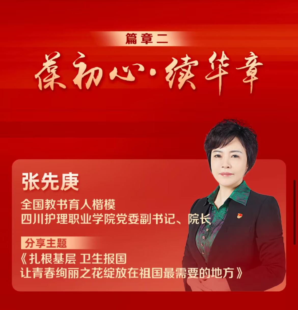 作为卫生健康类院校校长,张先庚教授以落实党的二十大报告中关于“把保障人民健康放在优先发展的战略位置”和“发展壮大医疗卫生队伍,把工作重点放在农村和社区”的决策部署为主线,以带领川护壤巴拉健康服务志愿队入户服务的照片为背景,讲述川护学子在艰苦的民族地区践行卫生报国使命的故事,勉励全国职教学子要紧跟国家战略,学好知识、练好本领,坚定不移听党话、跟党走,怀抱梦想又脚踏实地,勇敢地担负起历史重任,把青春“小我”融入时代“大我”,把个人的理想、前途、命运与国家的发展、民族的富强紧密结合在一起,立志做有理想、敢担当、能吃苦、肯奋斗的新时代好青年,到祖国最需要的地方建功立业,让青春在为祖国、为人民、为人类的不懈奋斗中绽放绚丽之花。