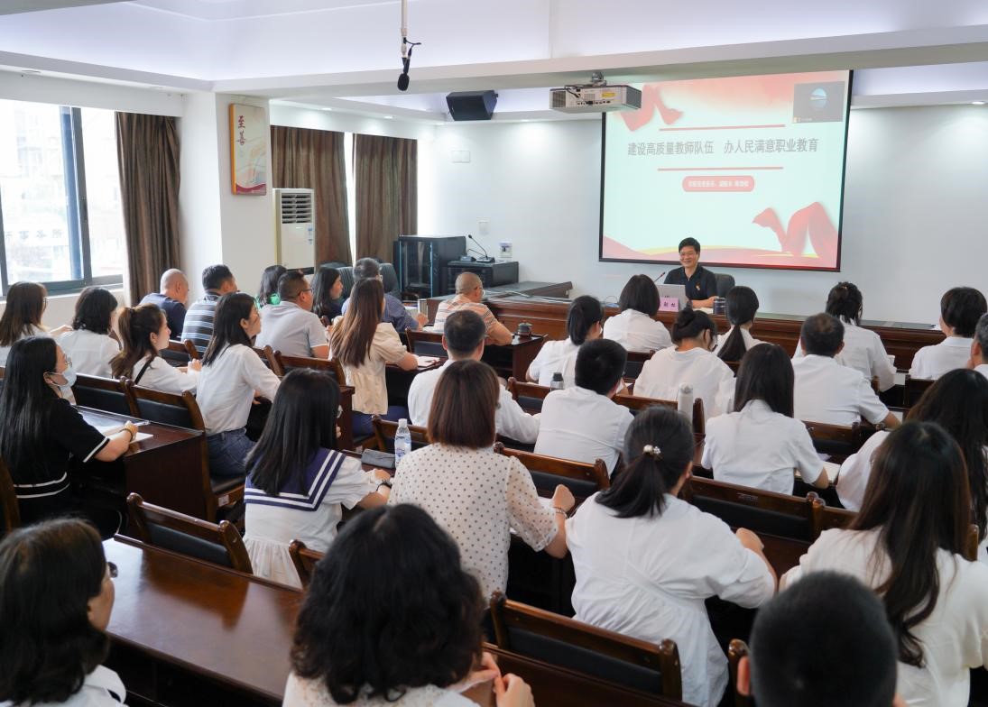 6月15日下午,学院党委委员、副院长陈劲松以“建设高质量教师队伍 办人民满意职业教育”为题,在成都校区教师发展中心讲授主题教育专题党课。康复技术系、党政办公室、人事处、后勤管理处和基建处等共计50余名党员参加本次学习。