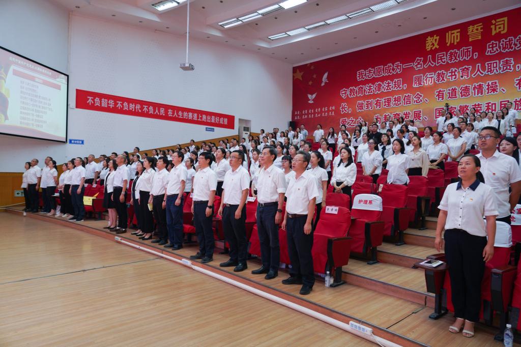 在江涛书记的带领下,新党员进行入党宣誓,全体党员重温入党誓词。7月入党的党员共庆政治生日。