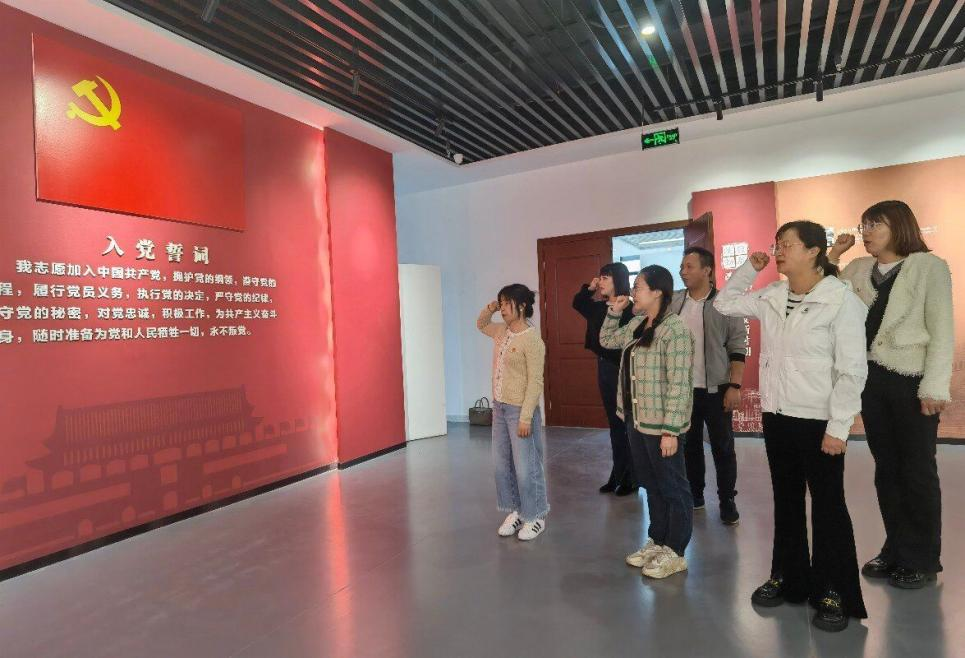 在学院智慧党建思政馆,党员们面对党旗,高举右拳,庄严宣誓,提醒自己今后不仅要以一名思政教育工作者身份,更要以一名共产党员的身份,牢记教书育人初心,践行立德树人使命,争当新时代教师队伍的先行者。