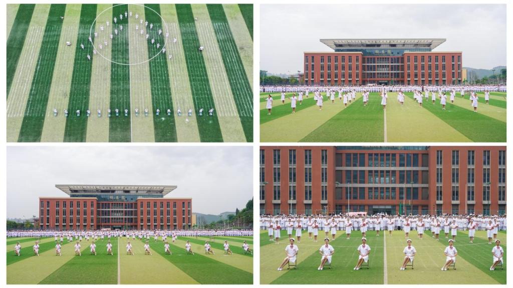 鼓声阵阵打出青春活力的舞蹈《红昭》,展现出了学子们奋勇争先的矢志决心和昂扬奋进的青春风采。“初心照亮新征程”千名学生集体舞表演,不忘初心奏响青春旋律,气势恢宏华彩乐章。