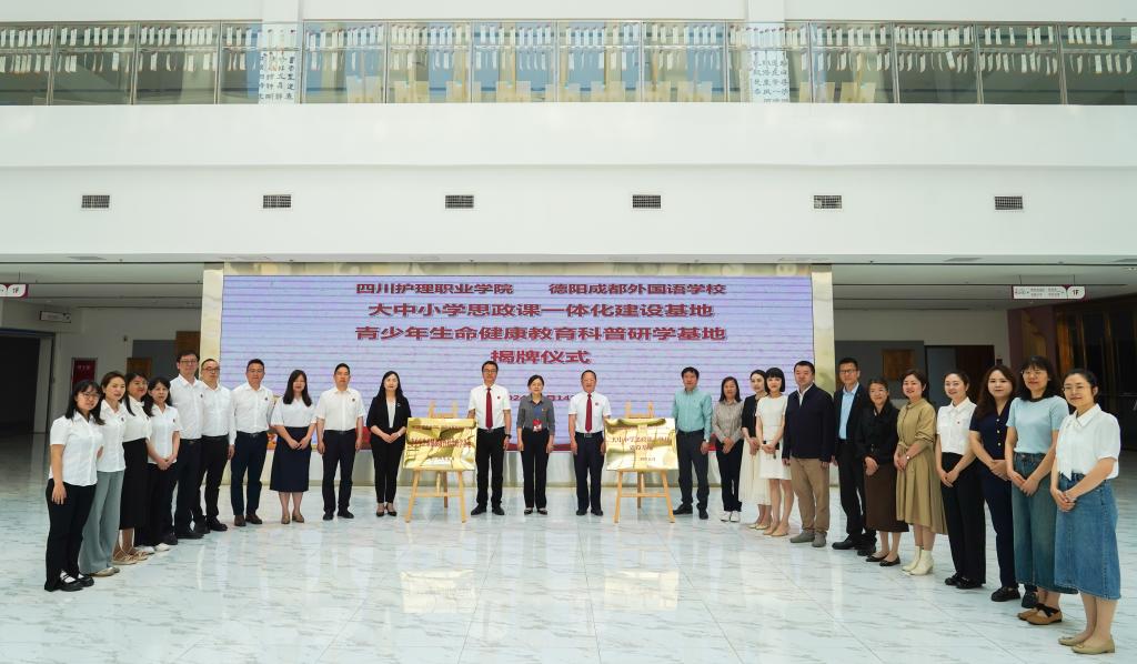 为充分发挥思政课立德树人关键作用,全面增强思政育人效果,促进青少年学生健康成长成才,5月14日上午, 学院与德阳成都外国语学校在学院德阳校区举行大中小学思政课一体化建设基地和青少年生命健康教育科普研学基地签约揭牌仪式。德阳市委两新组织工委党建指导员、德阳市民办教育协会秘书长吕霞,学院党委副书记彭博文,德阳成都外国语学校党委书记、校长张会能出席会议。会议由学院副院长梁小利主持。
