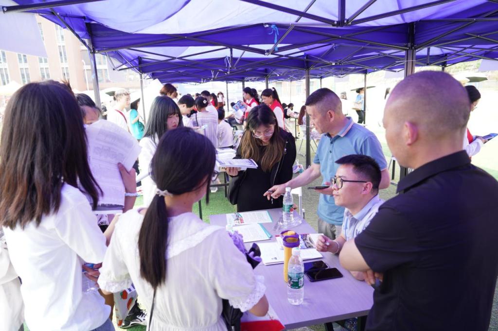 招聘会现场设立有征兵入伍宣传、“三支一扶”“西部计划”政策宣传、“实习咨询”、“校企合作”交流、面试指导等服务站,各系也设点为学生提供面试服务并向用人单位展示专业形象。参会同学和用人单位倍感贴心。