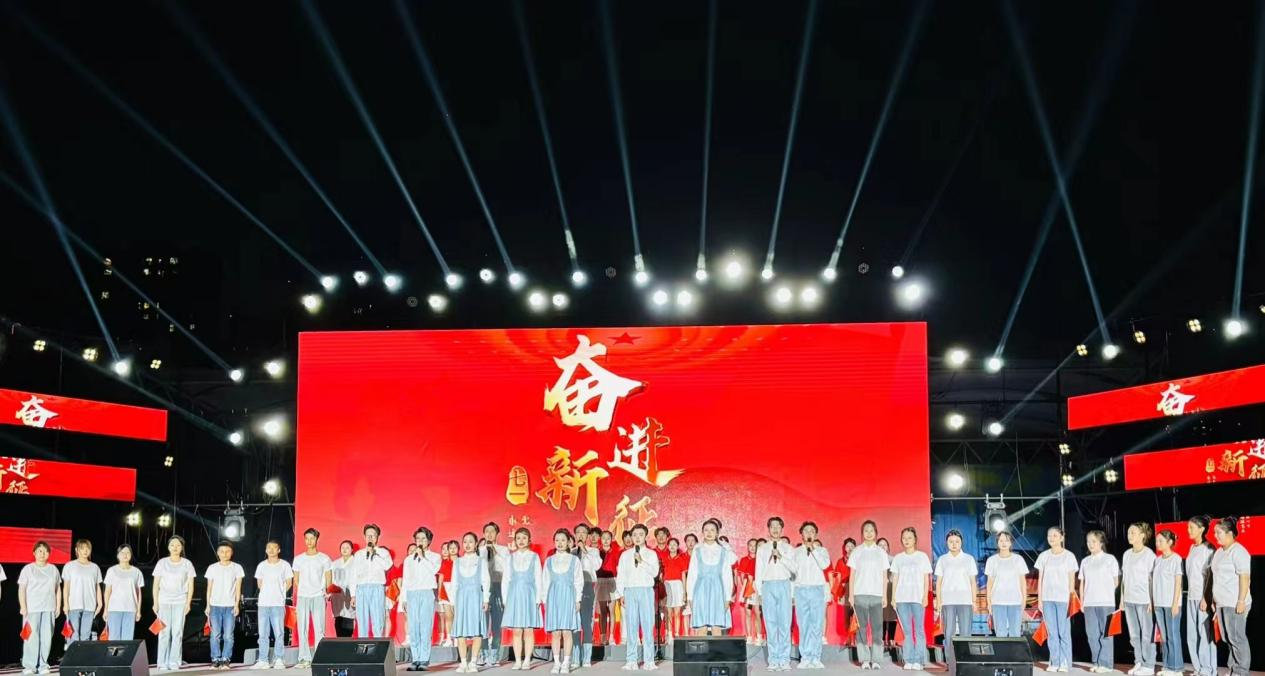 晚会在大合唱《红旗飘飘》中落下帷幕。此次晚会是我校特色美育品牌活动之一,彰显了学院师生锐意进取、勇立潮头的青春风采。接下来,学院将不断提升学生思想引领和美育实效,打造美育品牌,促进学生德智体美劳全面发展,打造活力校园。