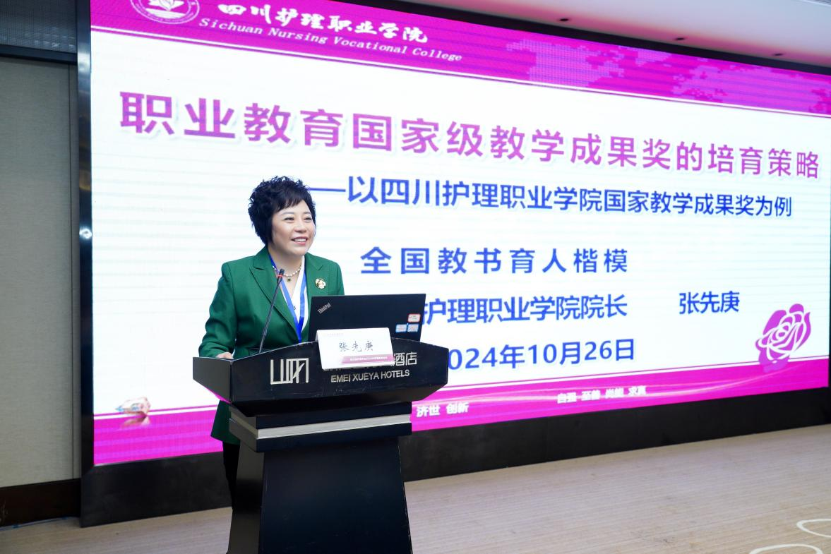 会上,第49届南丁格尔奖获得者、四川大学华西医院护理部主任蒋艳教授、四川大学华西医院护理学科主任李继平教授等6位专家分别在大会上作专题讲座。张先庚教授作“职业教育国家级教学成果奖的培育策略”专题讲座,以自己牵头成功申报的国家级教学成果奖为例,结合国家级教学成果奖的政策背景、原则与要求,向参会代表分享了教学成果奖的培育经验。学院护理系教师邱林利“基于‘岗课赛证训’的高职院校儿科护理课程思政建设与实践研究”获评优秀论文并在大会发言交流。充分展示学院在护理人才培养方面的创新实践经验。